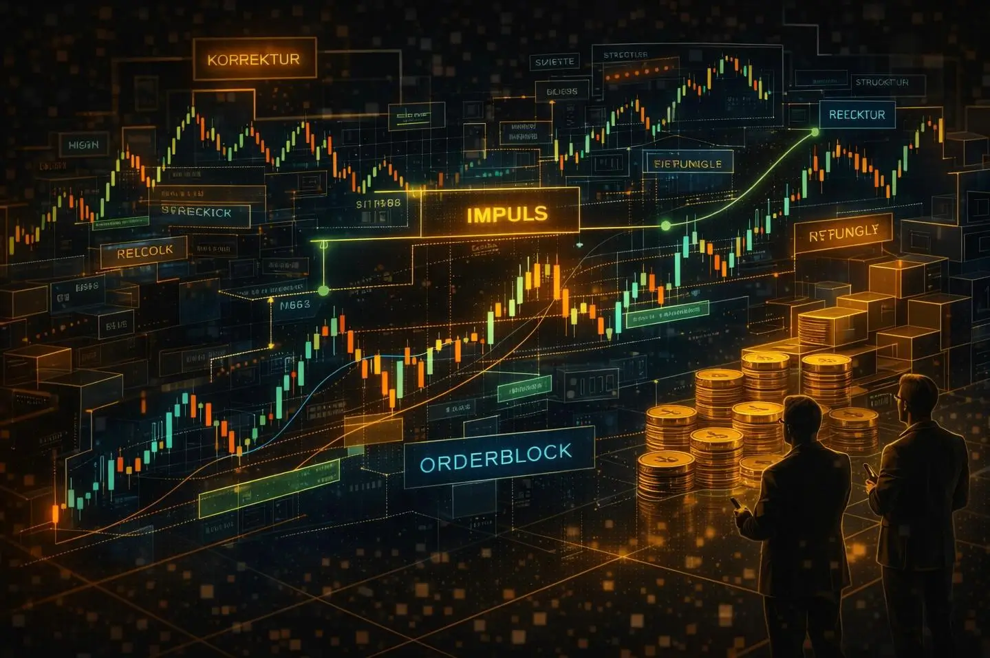 Hier lernst du die Struktur des Marktes im Detail kennen. Wir zerlegen den Markt in seine Bausteine und nutzen das I-R-K-O-I-Modell. So verstehst du, wie jeder Abschnitt des Marktes funktioniert – vom kleinsten Schenkel bis zur übergeordneten Struktur.