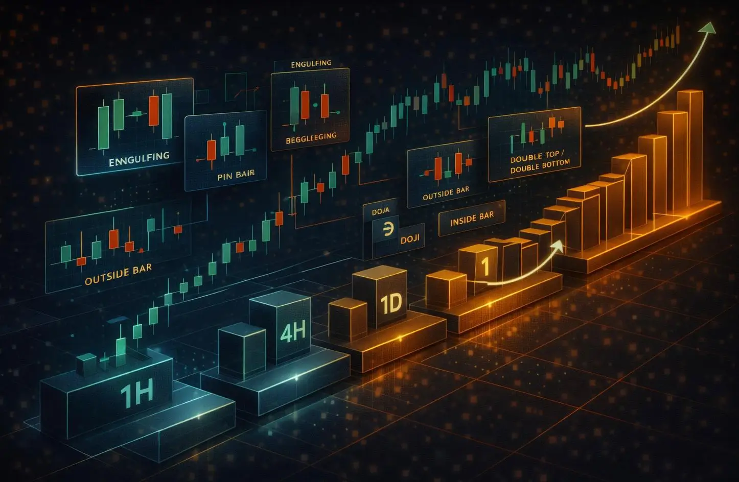 In diesem Modul lernst du, den Markt zu lesen wie eine Sprache. Du erkennst Muster, Candle-Kombinationen und das Zusammenspiel verschiedener Zeiteinheiten. Das Ziel: den Markt zu interpretieren, statt ihn zu raten.